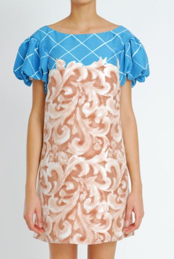Spring summer 2013 collection at preen! i think the geometric shapes work perfectly on the contrasting white background. short cut pieces of fabric to give the overall garment a feel of miss match, showing different lengths, which could maybe be a way of an individual picking an individual design for a spersific body shape.